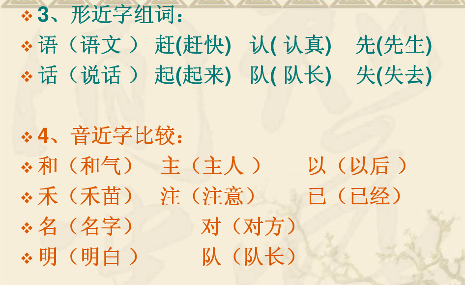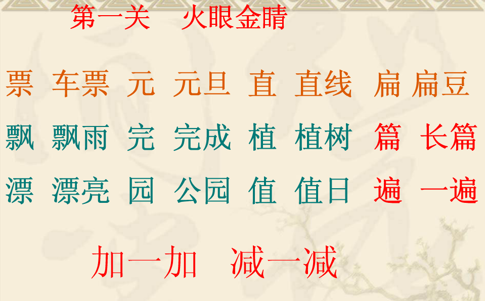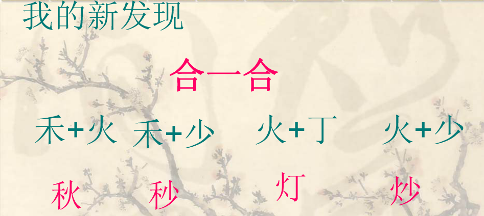 例:小+大 →(尖)(笔尖) 明-日→(月)(月儿)