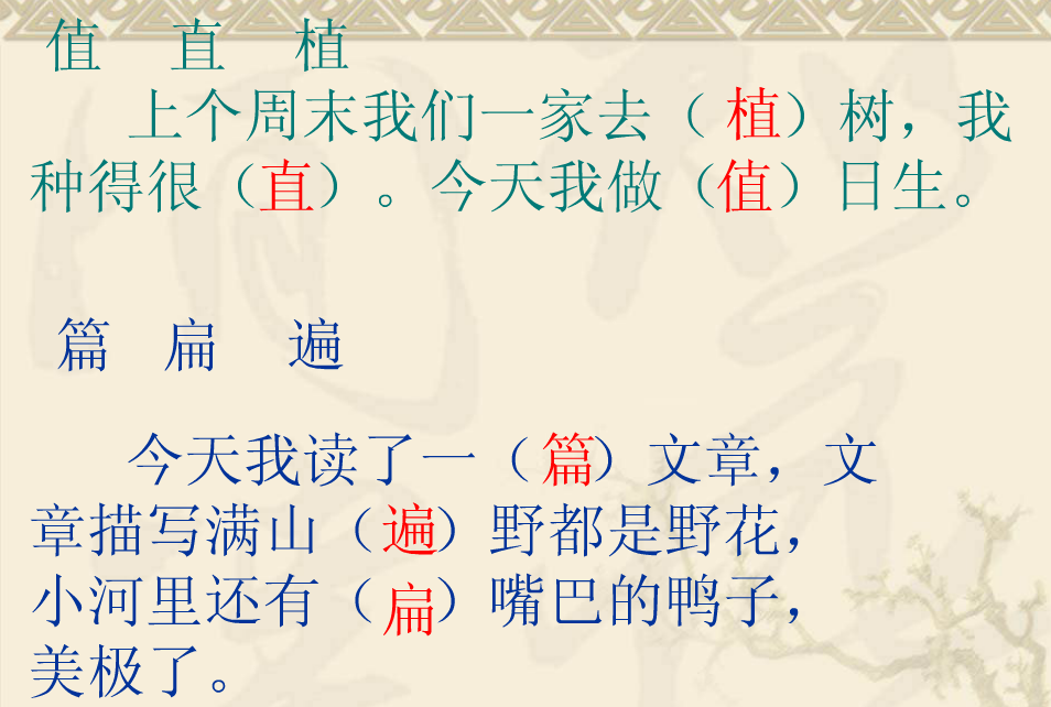 课文3:邓小平 植树节 年岁 年龄 已经 休息 站立 行走 扶手 栽树 亲人