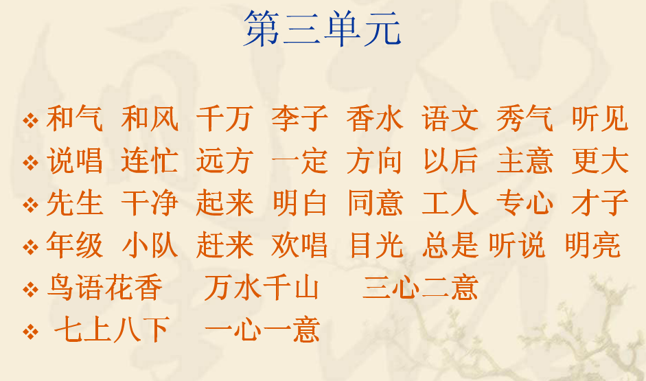 课文6:胖子 喜欢 张开 刚才 贴画 墙上 替换 拖鞋 帮忙 等车 变化 心情