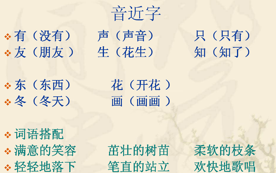 课文1:醒了 打雷 洗澡 树枝 软了 梳头 柳梢 玩耍