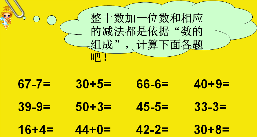 65+5= 12+40= 81+6= 7+25= 92-6= 75-60= 82-4=