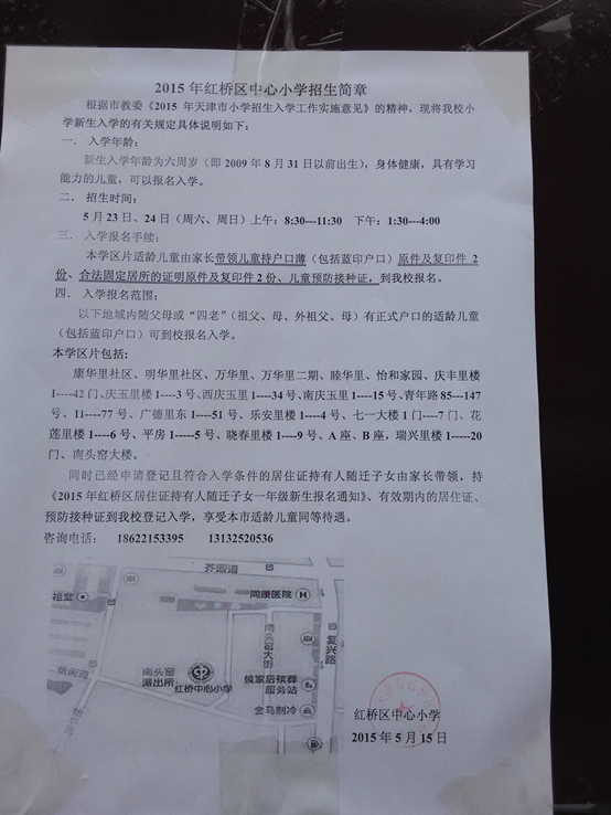 2015年天津市红桥区中心小学招生简章