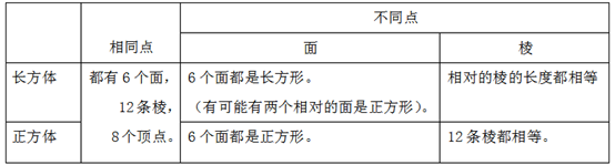 ① 面:有6个面,都是长方形(特殊情况下最多有两个相对的面是正方形)。相对的面完全相同。