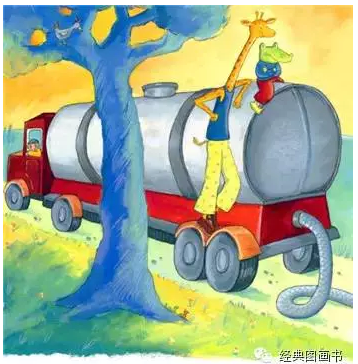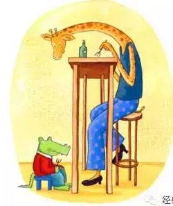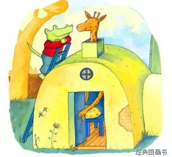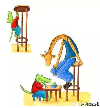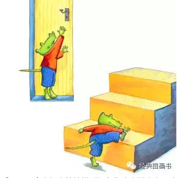 看,长颈鹿小姐家的楼梯对鳄鱼先生来说实在是太高了。