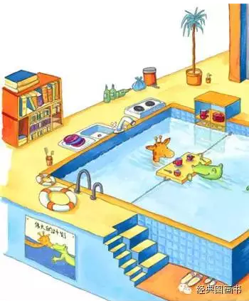 现在,鳄鱼和长颈鹿住在游泳池里。