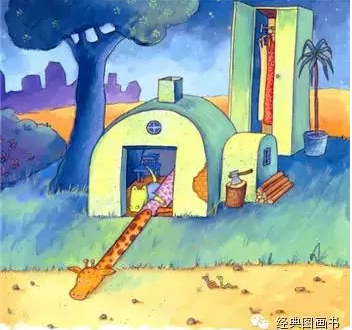 尽管如此,他们是一对真正的爱人。 他们是怎么认识的?这写在另一本书里。 对于这段相识,鳄鱼和长颈鹿都非常高兴。 当然,真心相爱的人都希望有一幢房子,这样他们才能够生活在一起。于是,他们搬到城市的边缘,搬进鳄鱼的小房子。 不过,那儿并不理想,一点儿也不理想。 长颈鹿走到哪儿都会撞到头。