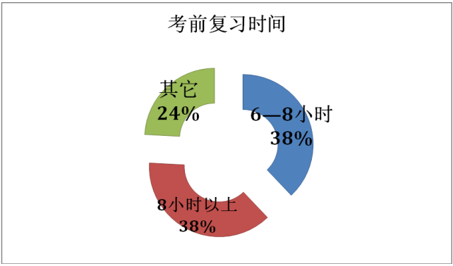 考前一周每天的复习时间6—8小时的占37.93%,8小时以上的占37.93%。(图片四舍五入)