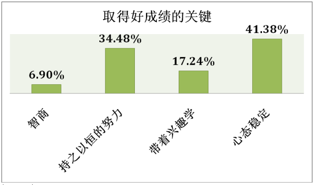 这次的调查也说明了这一点,良好的学习习惯、持之以恒的努力再加上平和的心态,才是他们成功的最重要的因素。
