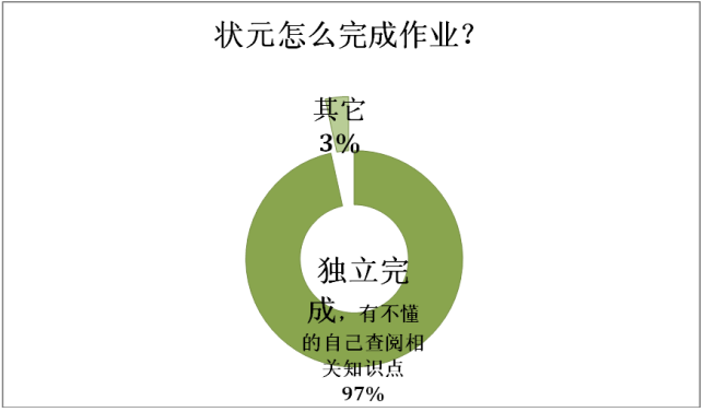 独立完成作业,有不懂的自己查阅相关知识点,这一比例高达96.55%。(图片四舍五入)