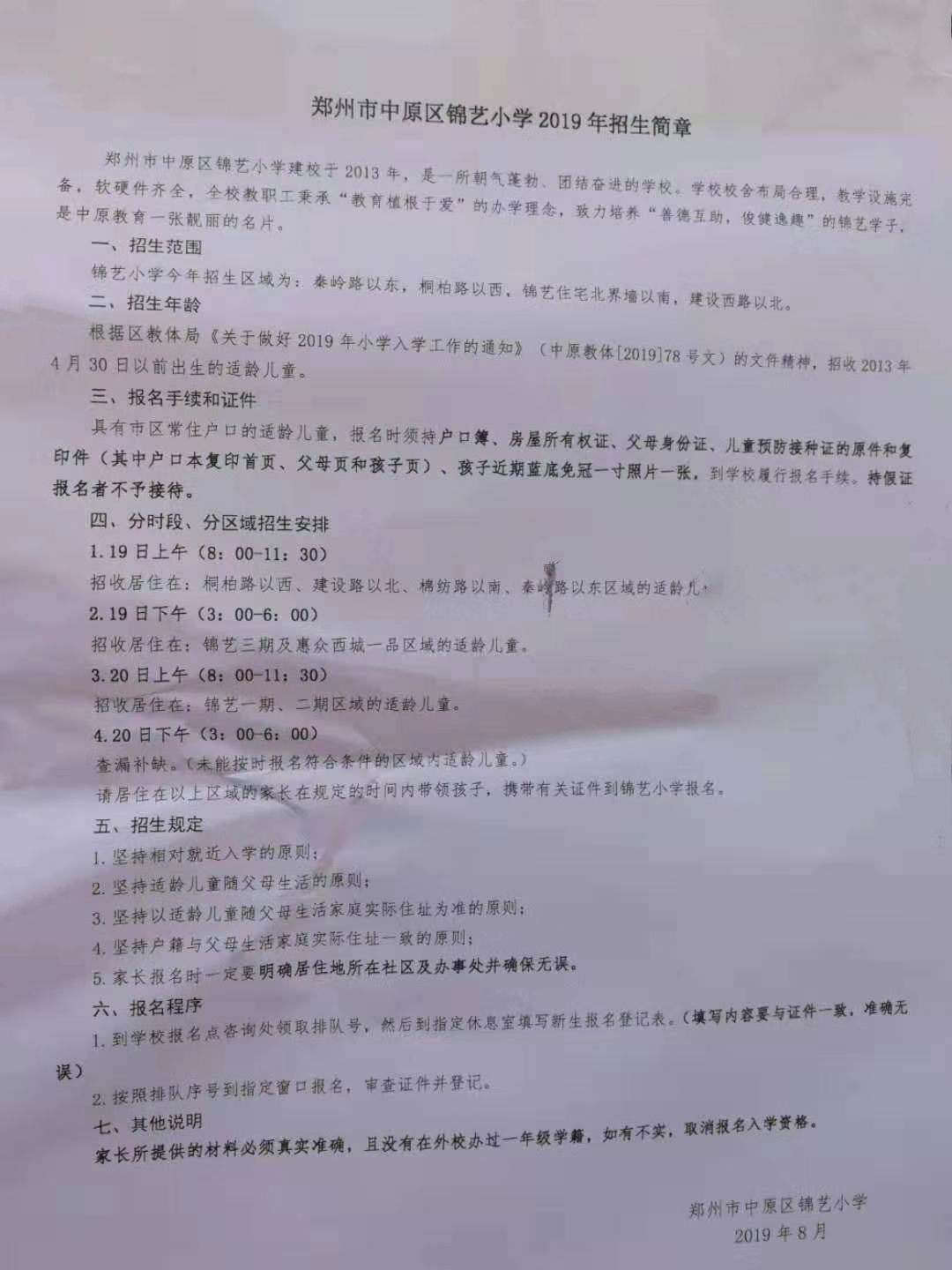 郑州市中原区锦艺小学2019年招生简章、划片信息及幼小衔接资源、书籍推荐