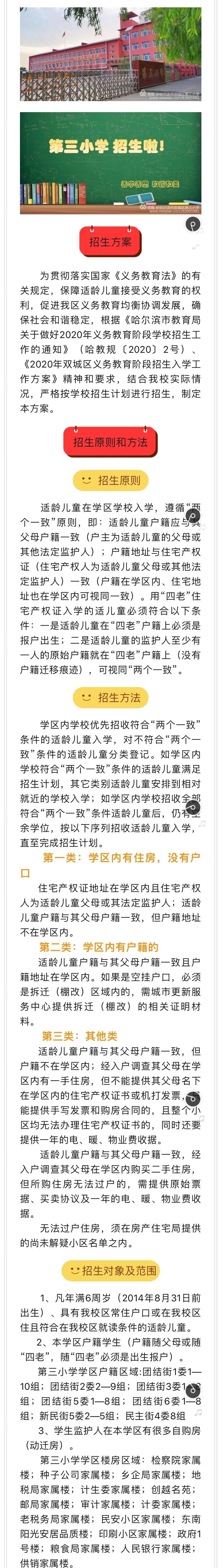 哈尔滨市双城区第三小学2020年招生公告及招生咨询电话