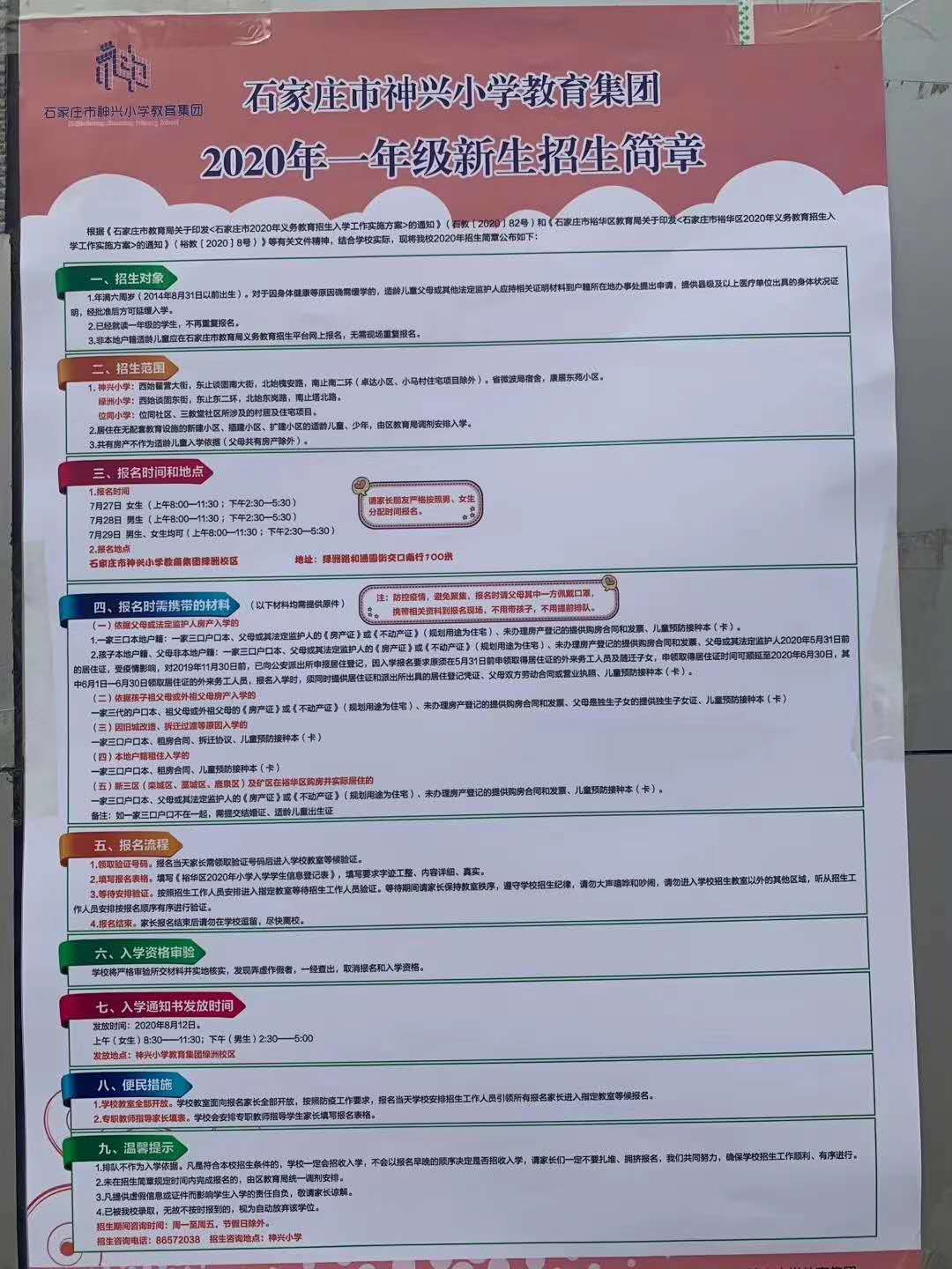 2020年石家庄市神兴小学招生简章,含招生咨询电话