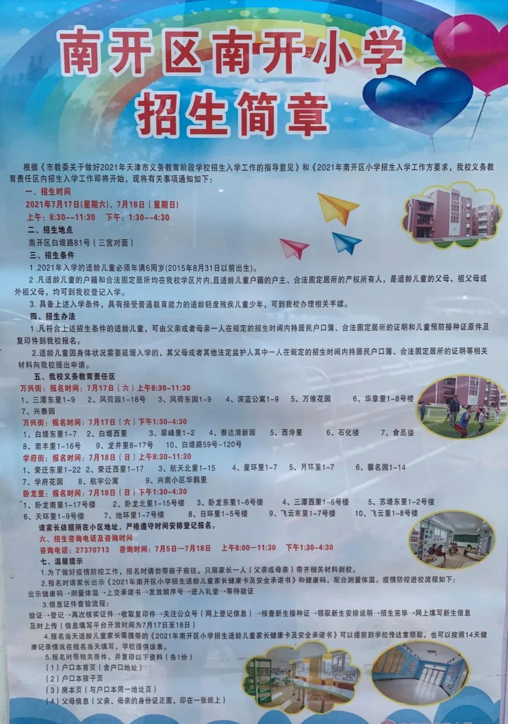 2021年天津市南开区南开小学招生简章,含招生咨询电话和学区范围划分