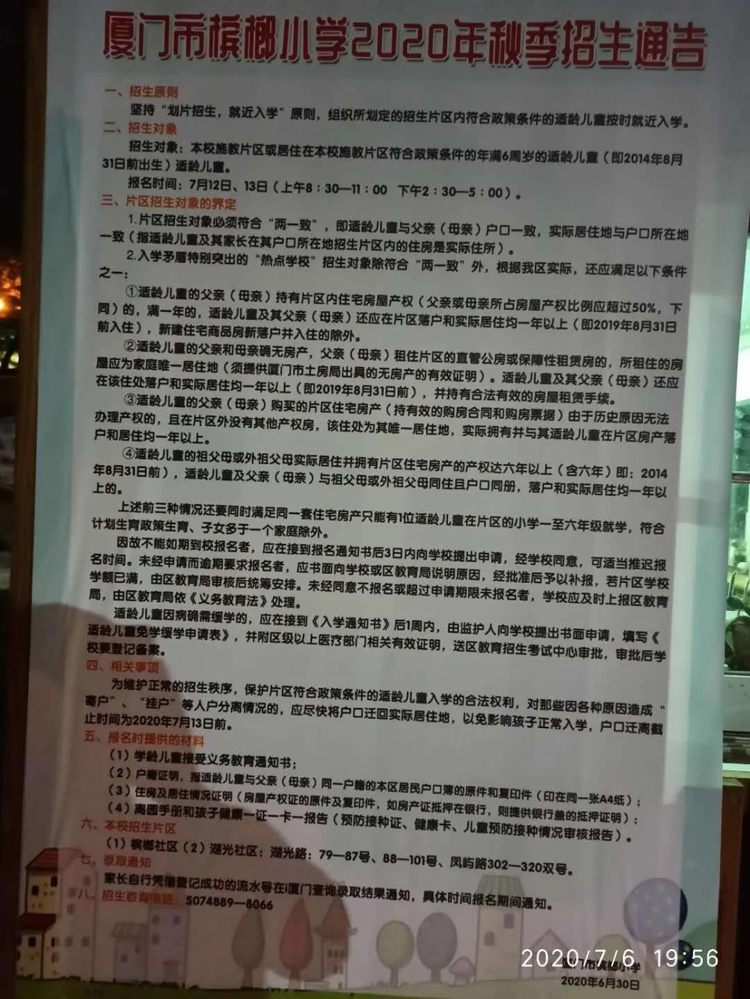 厦门市槟榔小学2020年秋季招生通告及招生咨询电话