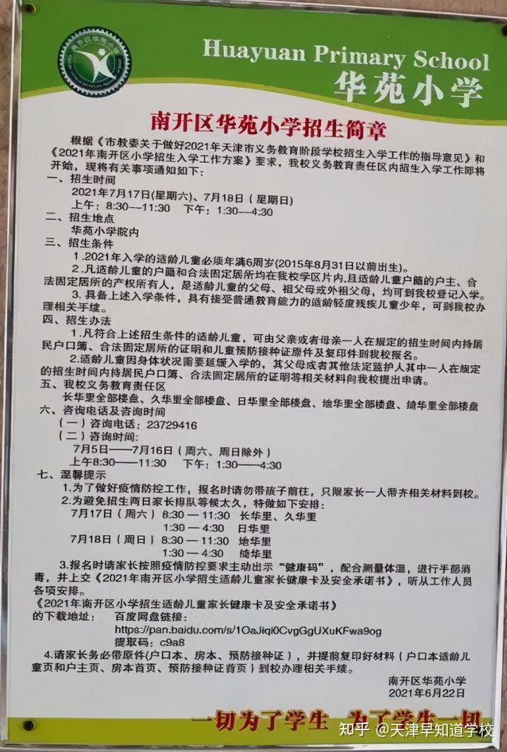 2021年天津市南开区华苑小学招生简章,含招生咨询电话和学区范围划分