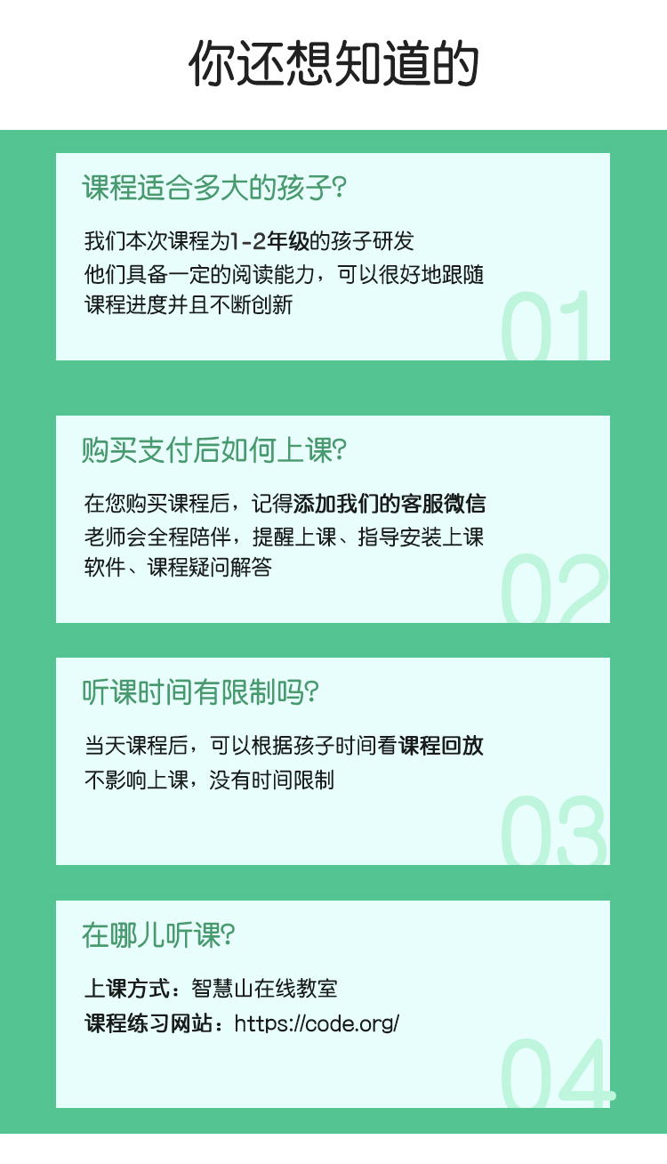 通过课程让孩子接触到编程的真正样子,知道编程是什么。