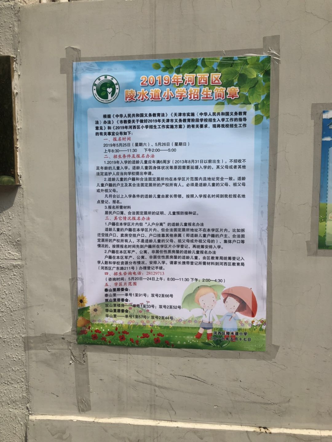 【2019年】天津市河西区陵水道小学招生简章