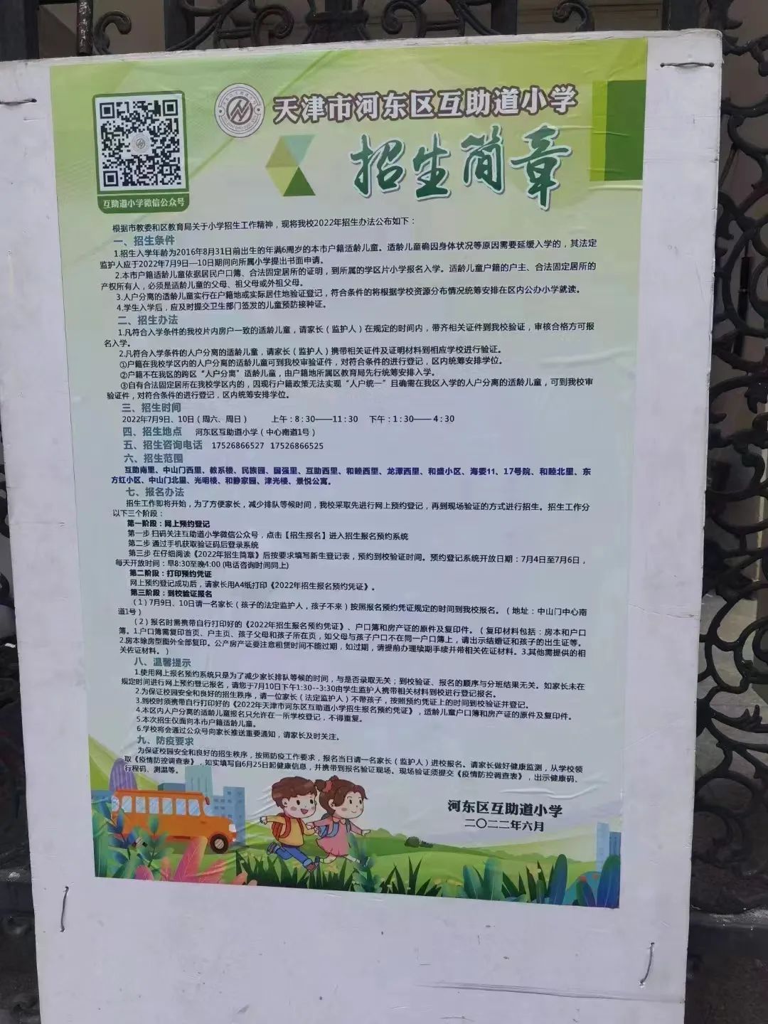2022年天津市河东区互助道小学招生简章,含小学学区招生范围划分以及招生咨询电话