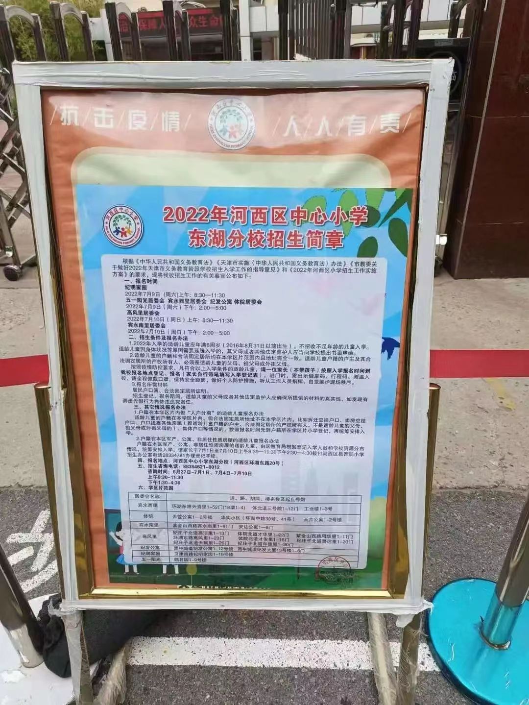 2022年天津市河西区中心小学东湖分校招生简章,含招生咨询电话和学区范围划分